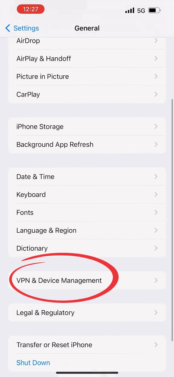 - Gehe zu Einstellungen > Allgemein > VPN & Geräteverwaltung.